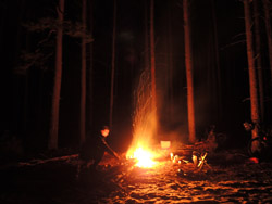 Holz, bauen das Zelt auf und schon züngeln die ersten Flammen aus